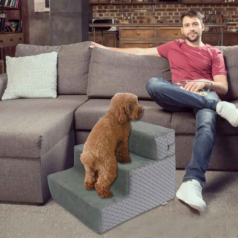Best Pet Dog Stairs Ladder 3 Steps Small Dog For Puppy Cat Pet Stairs Anti-slip Removable Cover Dogs Bed